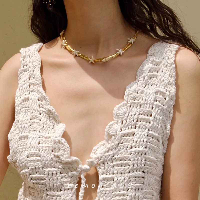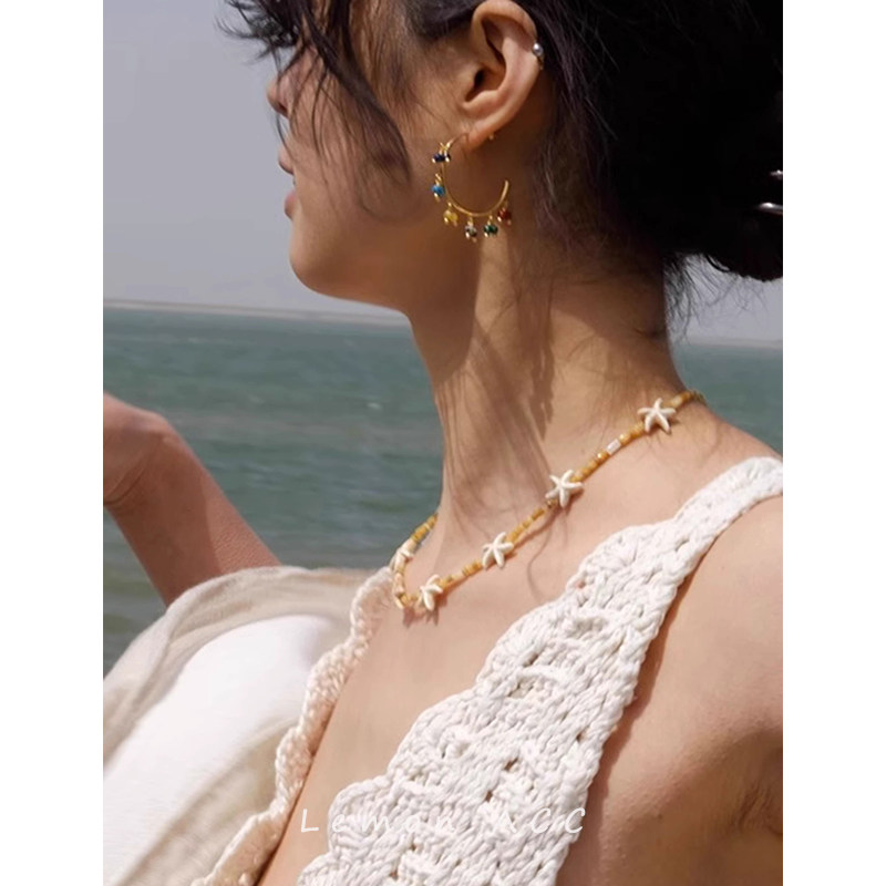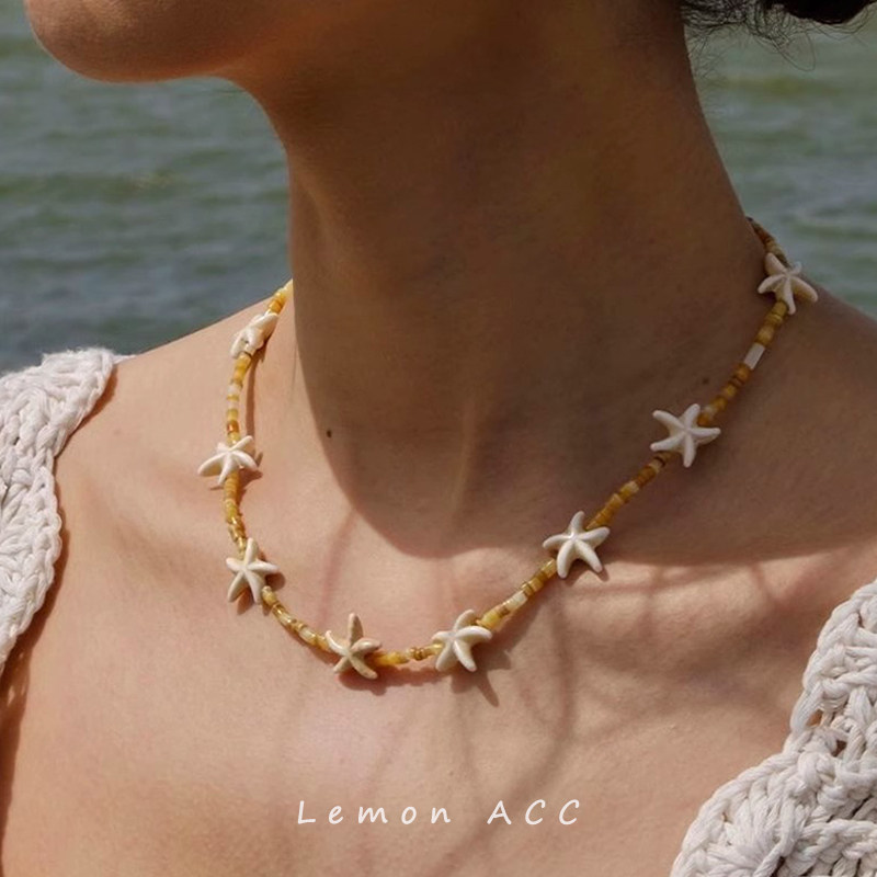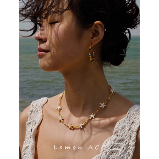 Lemon跳舞海星 手作天然松石五角星贝壳串珠项链度假风小众锁骨链