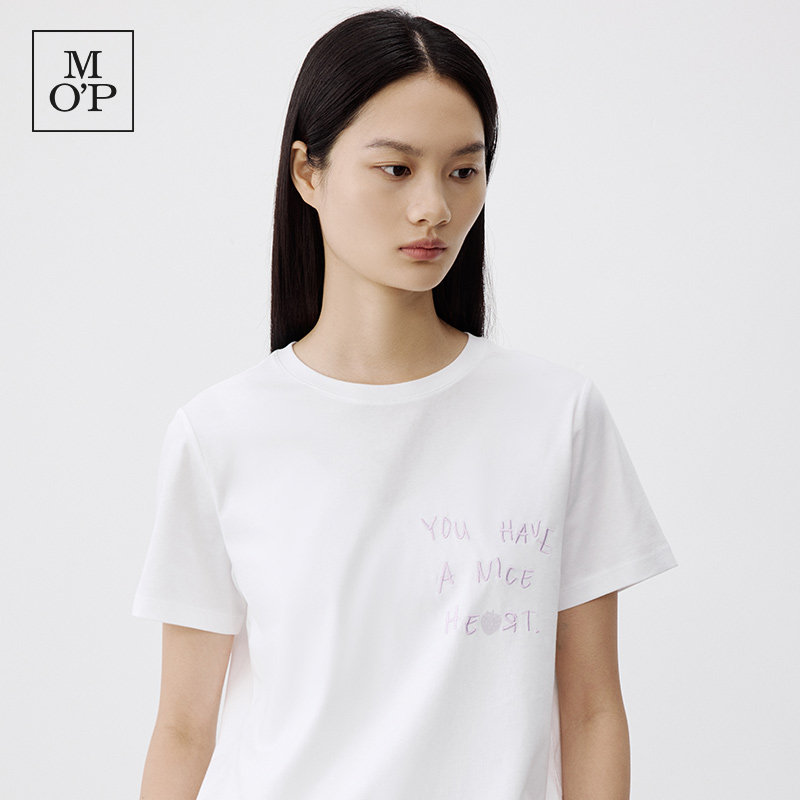 MOP Polo 春季 新款 T恤女士 Marc 简约纯棉胸口绣花字母宽松短袖