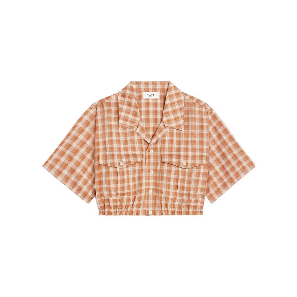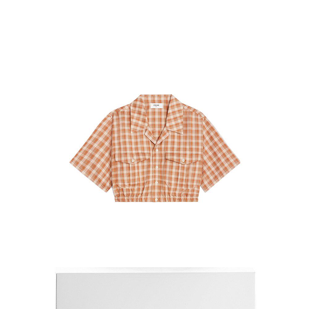 2C51B792X.短袖 衬衫 格纹短款 香港直邮Celine