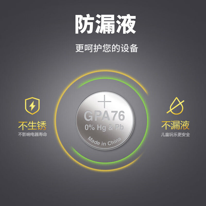 GP超霸LR44纽扣电池A76扭扣AG13数显游标卡尺L1154F电子357a碱性SR44圆形电池GPA76纽扣电子1.5V