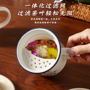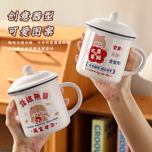 发财暴富陶瓷马克杯带盖家用仿搪瓷大容量早餐杯子办公室喝水茶缸