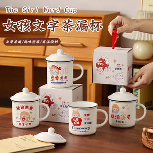 大号巨无霸水杯定制马克杯 泡茶缸子男生款 带盖搪瓷杯怀旧经典 老式
