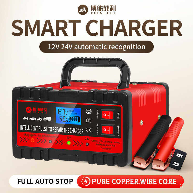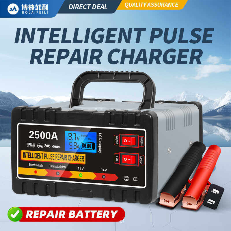 智能12v24V伏汽车电瓶充电器摩托车通用铅酸蓄电池脉冲修复充电机