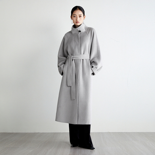 慵懒风双面羊毛大衣女中长款 灰色毛呢外套高级感A
