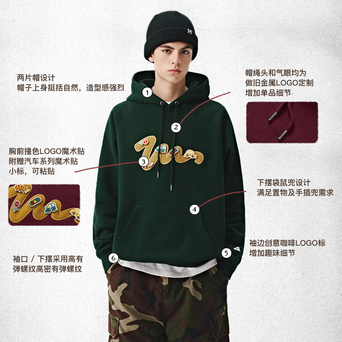 宽松长袖 新款 T恤情侣上衣 魔术贴连帽卫衣男2024秋季 714street美式