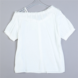 甜美蕾丝领露单肩白衬衫 上衣 7.23L79646宽松很仙女设计感小众短袖