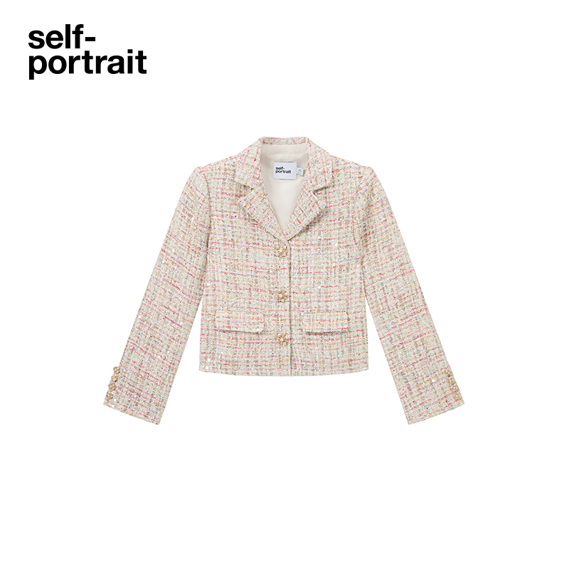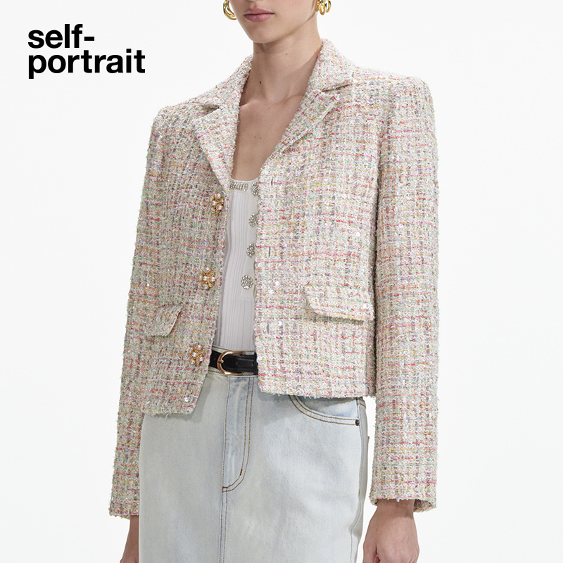 外套 秋冬白混色编织粗花呢小香风西装 self portrait