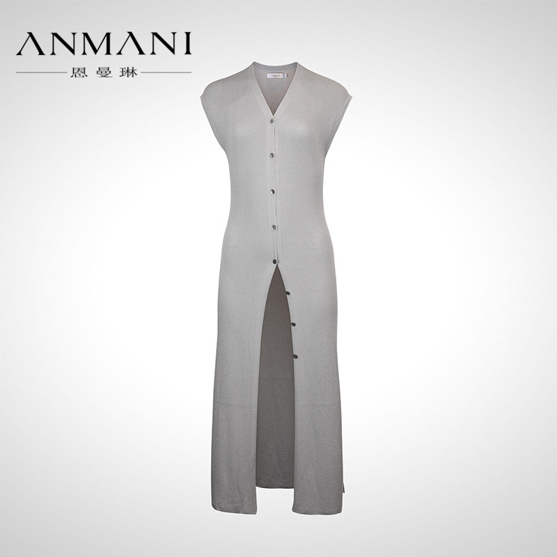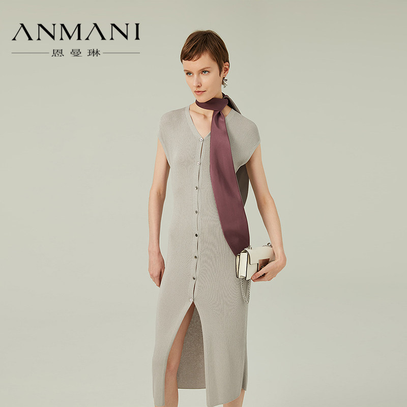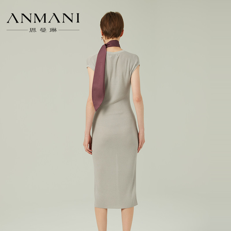 单排扣修身 新品 针织连衣裙Q329053B ANMANI恩曼琳24春季 商场同款