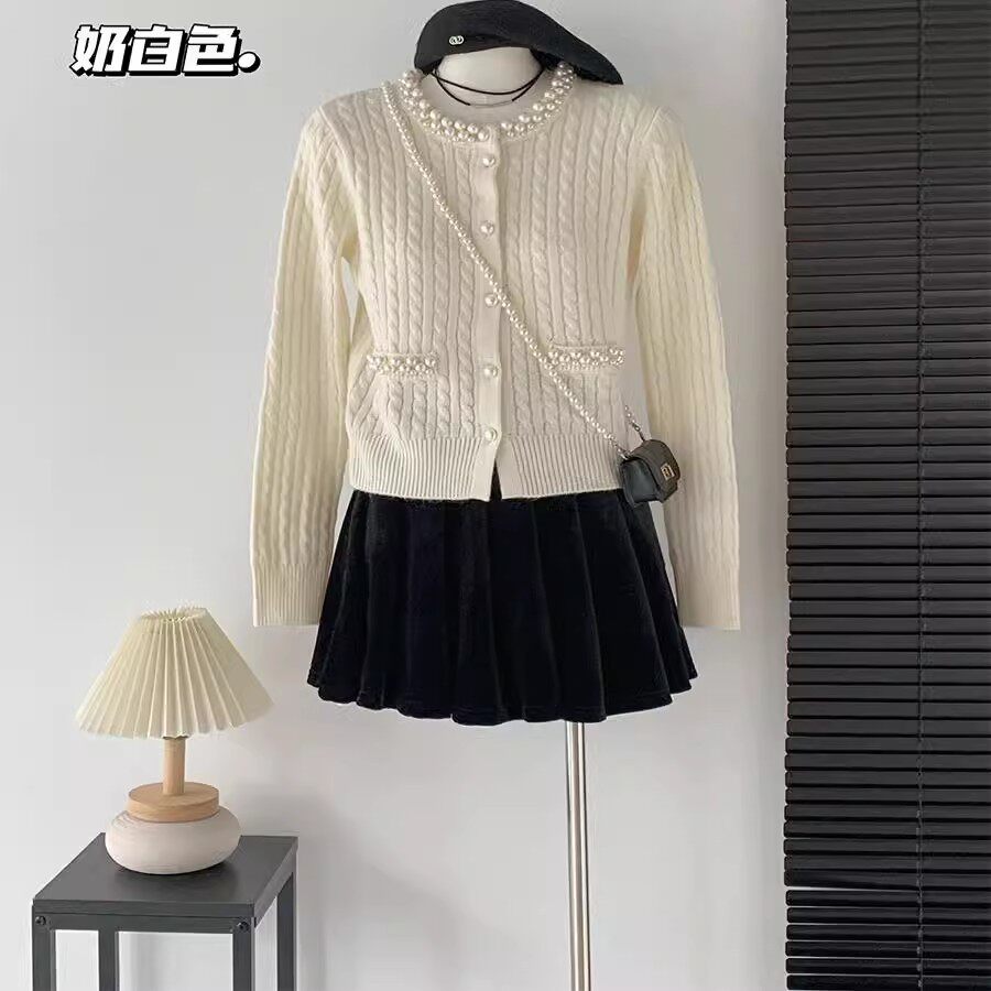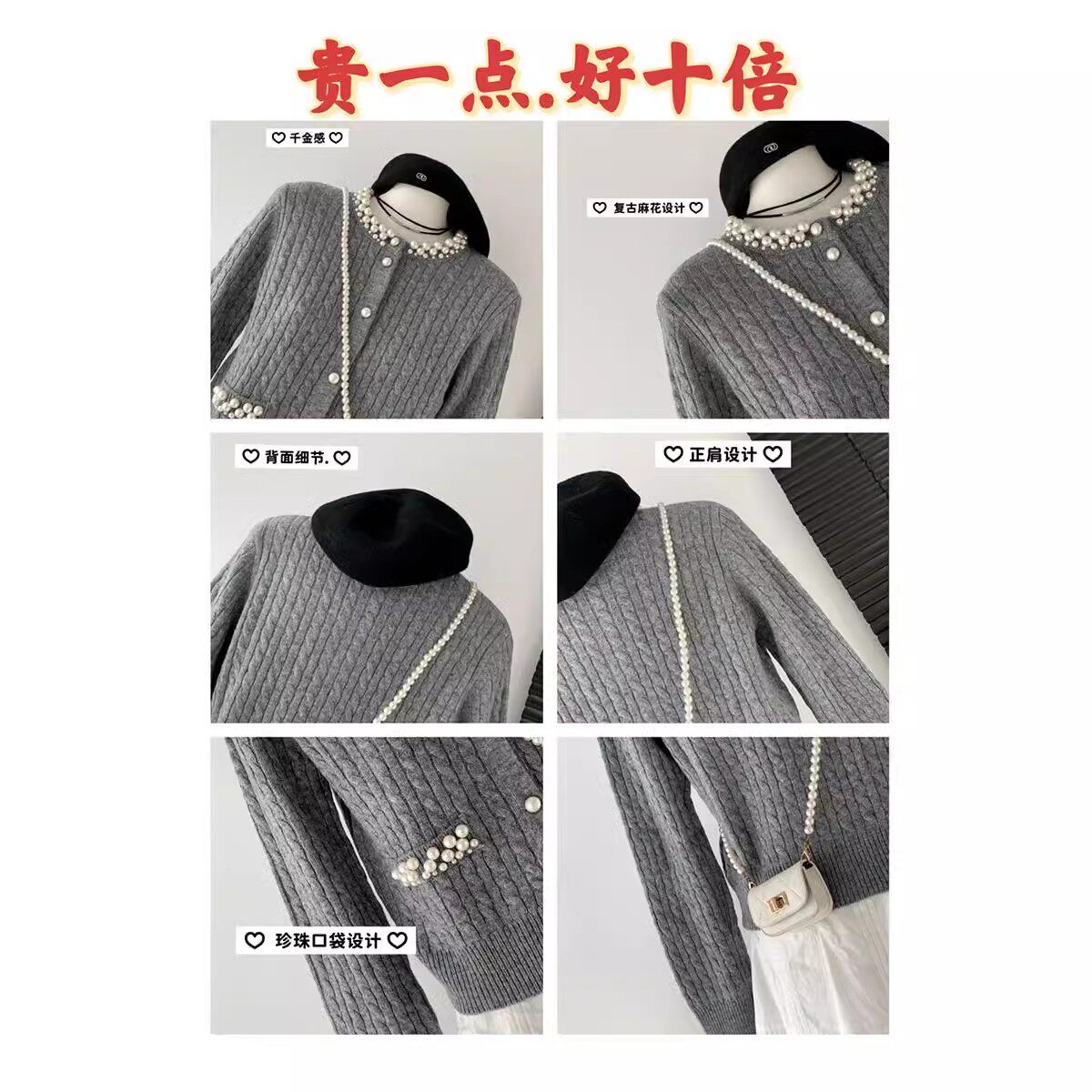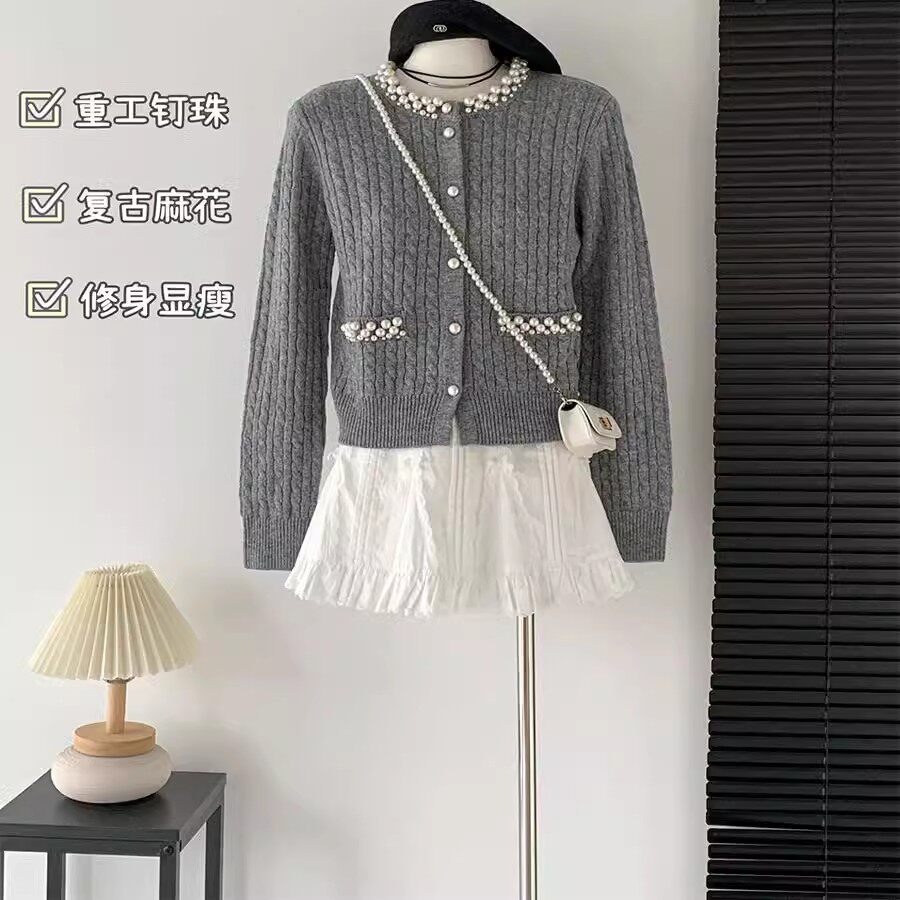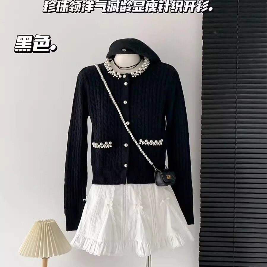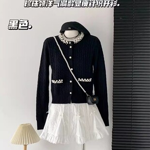 千金小香风外套女高级感粉色上衣 法式 杨小卷 珍珠领羊毛针织开衫