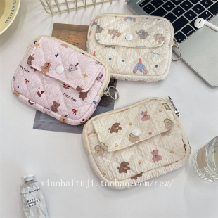 小白兔几 卡通碎花绗缝多功能收纳包整理包证件包卡包钥匙零钱包