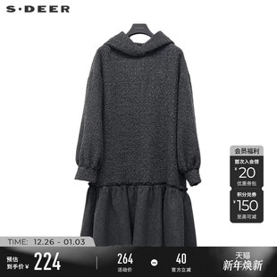 sdeer圣迪奥冬季 连帽碎褶欧根纱卫衣毛呢连衣裙S234Z1277 女装