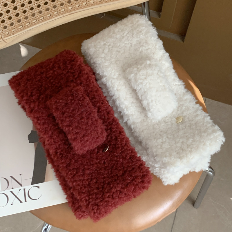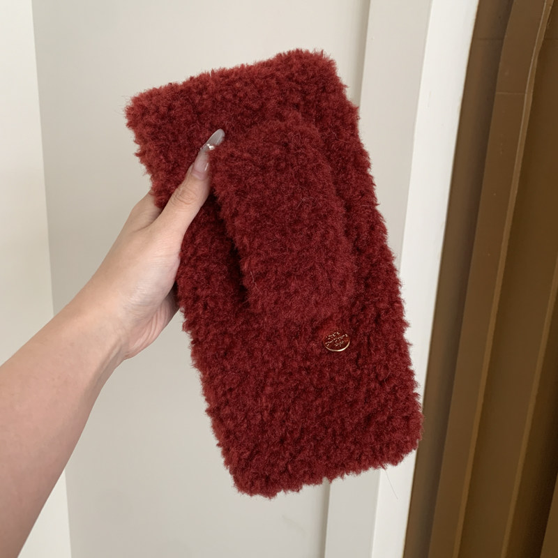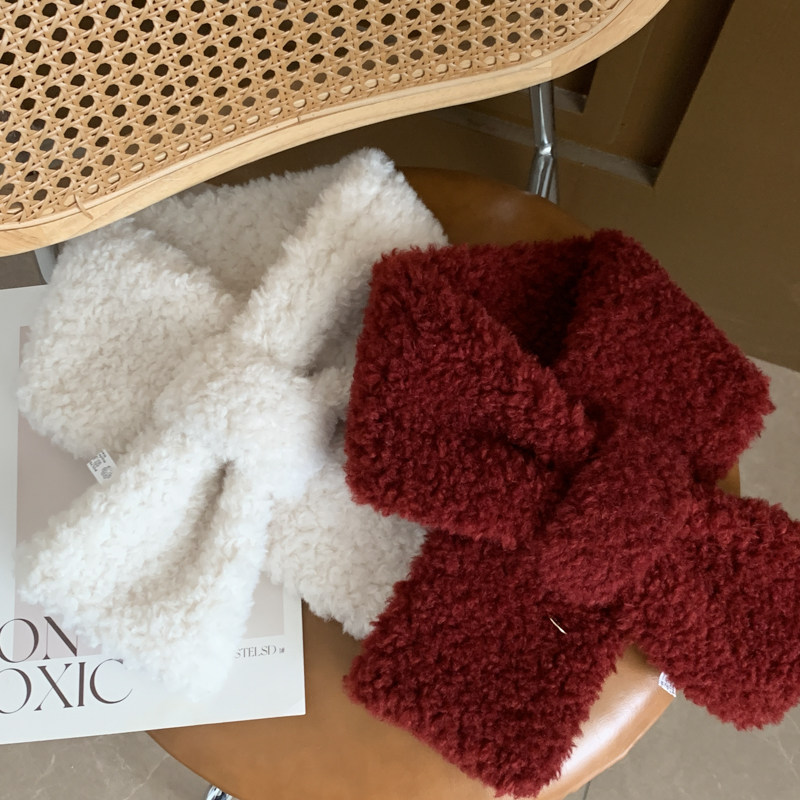 安哥拉红流行色韩系保暖百搭羊羔毛交叉短款 围巾 小围脖女学生冬季