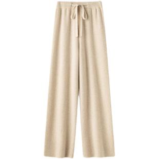 垂坠感羊绒针织拖地裤 女外穿加长直筒裤 澳洲全羊毛阔腿裤 2024冬季