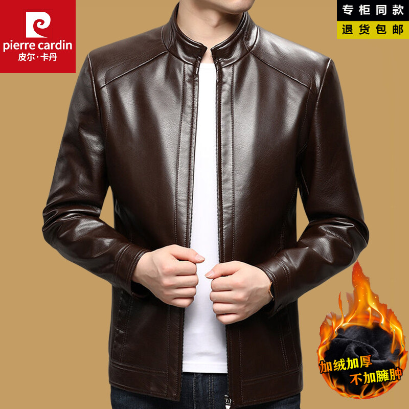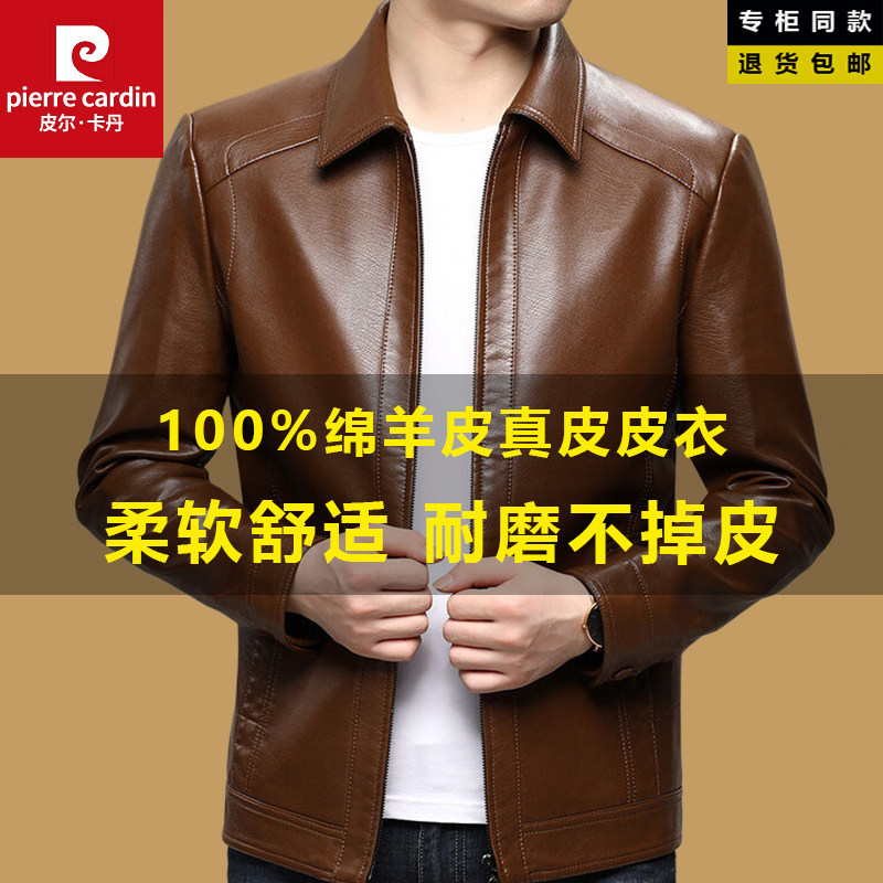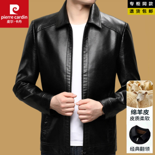 皮尔卡丹正品 商务休闲立领海宁真皮外套 绵羊皮翻领皮衣男秋冬新款