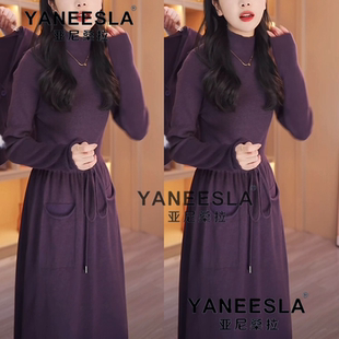 2024秋冬新款 打底裙 轻奢高级感马甲两件套针织连衣裙配大衣中长款