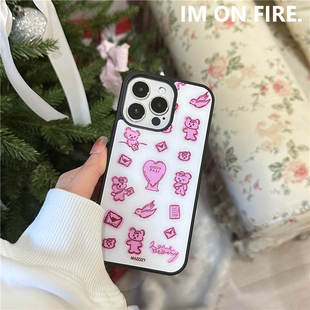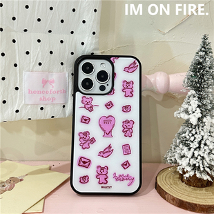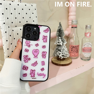 自制韩国ins卡通可爱复古小清新粉色邮箱爱心信封小熊iPhone12pro13promax14黑边全包手机壳15plus16