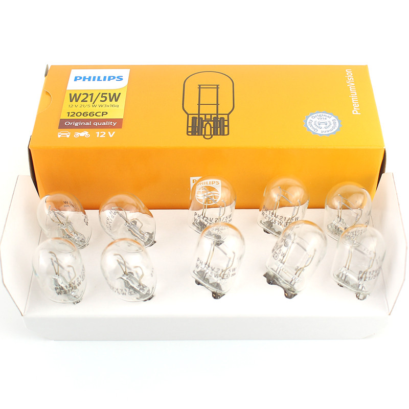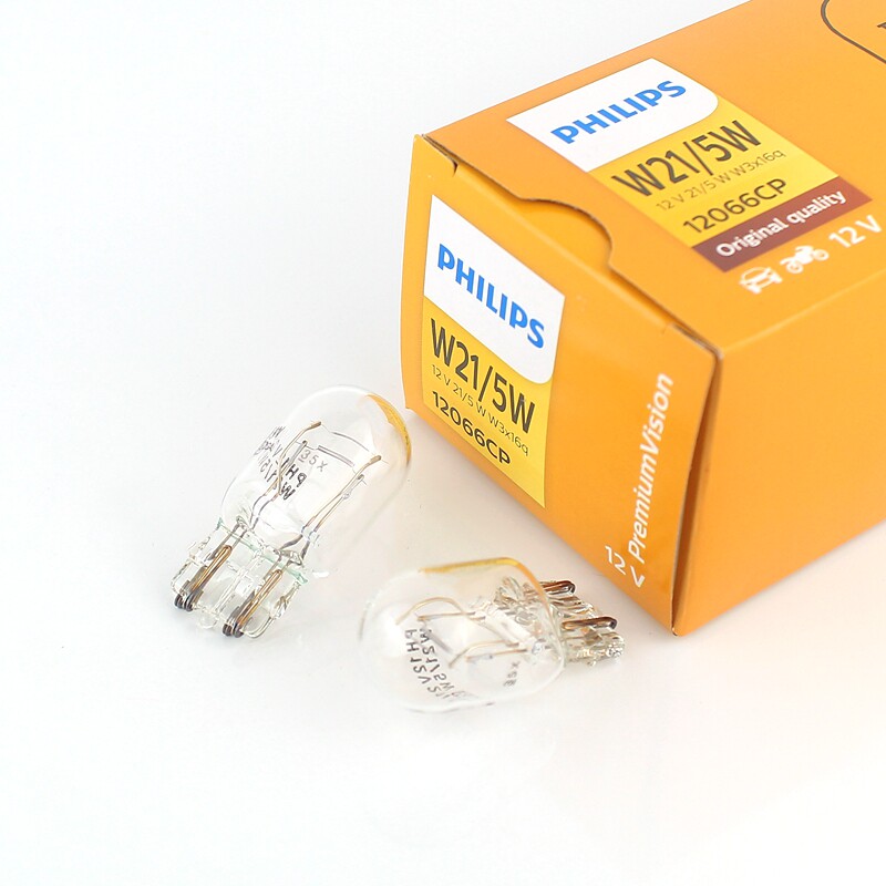 飞利浦W21 5W汽车刹车灯泡T20双丝大插泡7443示宽行车灯尾灯12066