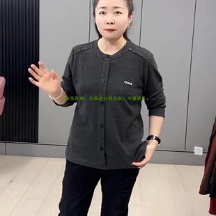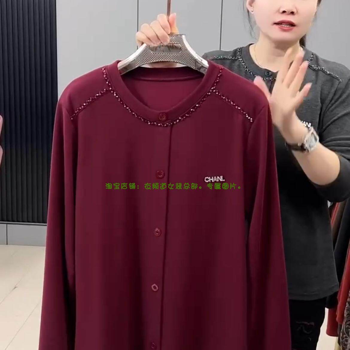 新款 2024冬季 韩版 时尚 大码 圆领重工钉珠洋气显瘦胖妹妹打底衫 女装