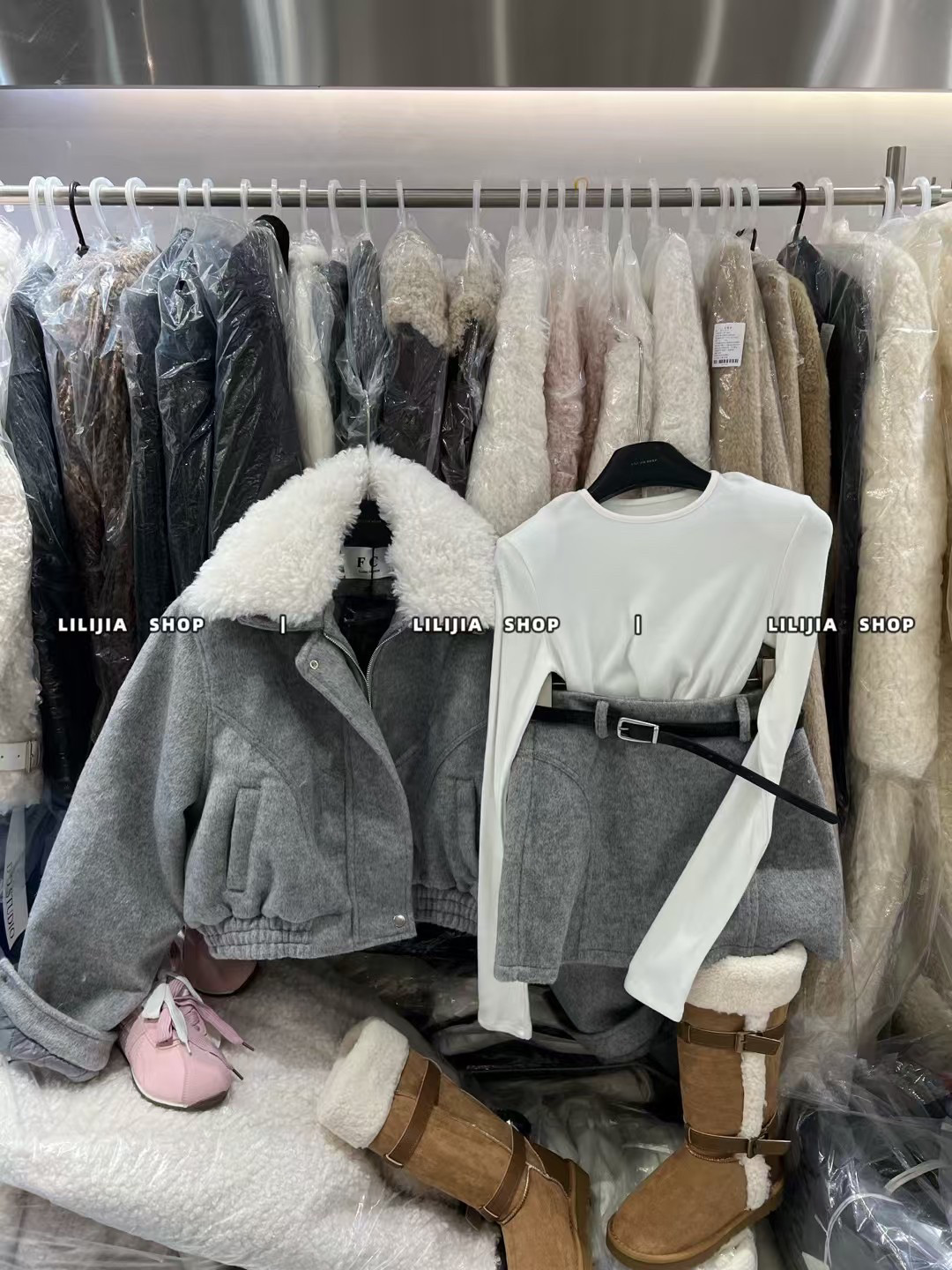 独特超好看羊羔毛领短外套 新款 Miss家 韩系穿搭一整套女2025冬季