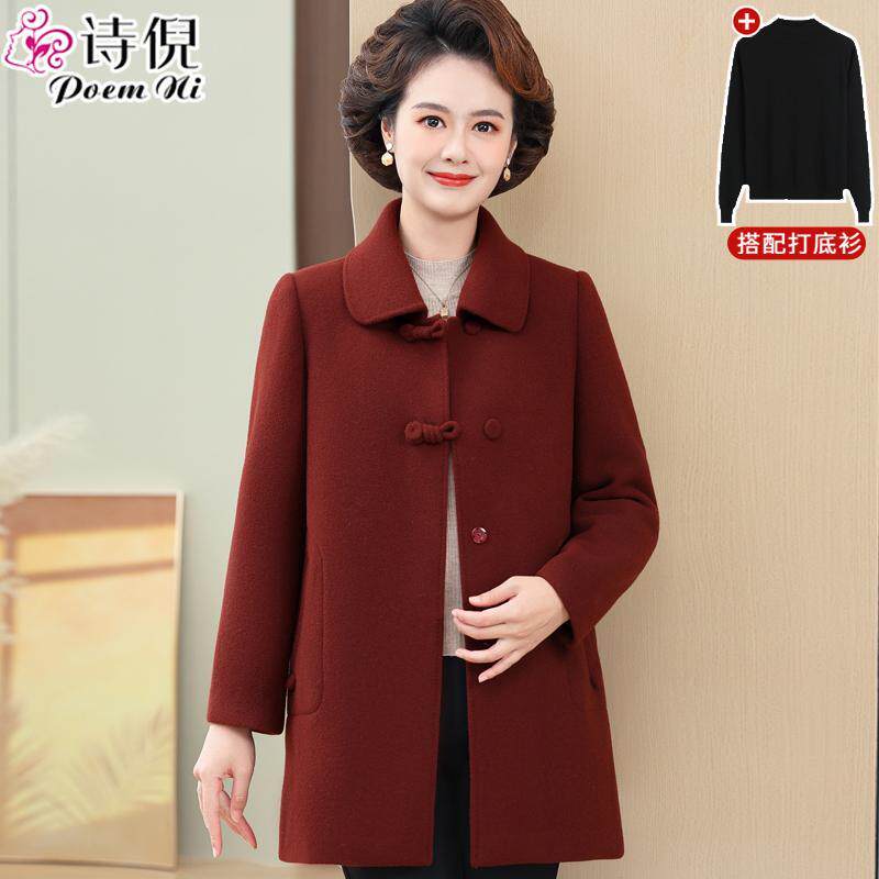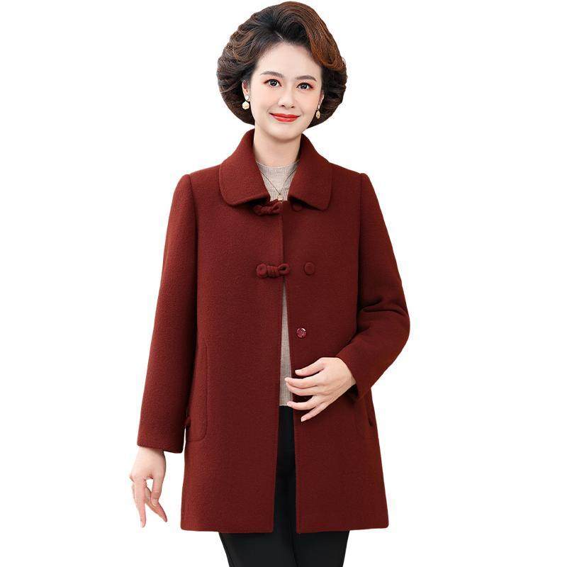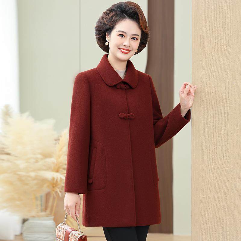 中老年人双面呢羊毛大衣女高贵大码 洋气宽松呢子外套 胖妈妈秋冬装