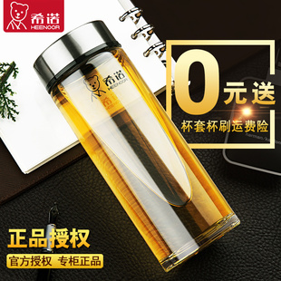 希诺玻璃杯单层加厚带盖办公茶杯男款 喝水杯子家用耐高温水杯定制