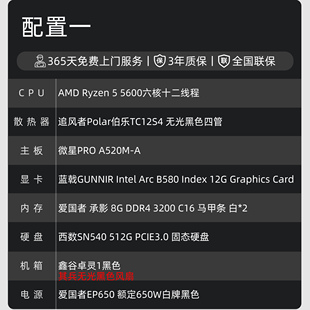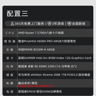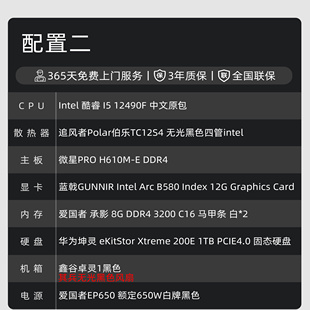 7500F游戏性价比台式 B580纯黑主机 12600KF 12400F 主机 5600