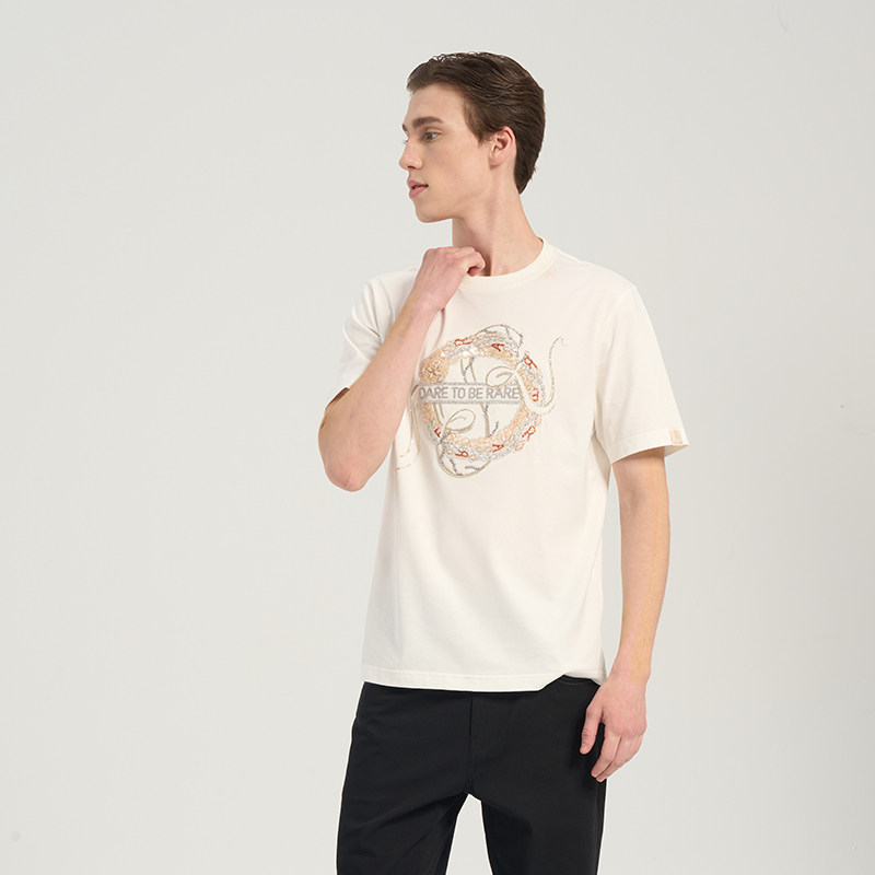 奢华男士 生肖瑞蛇重工款 T恤 白色圆领短袖 RARE威雅男装