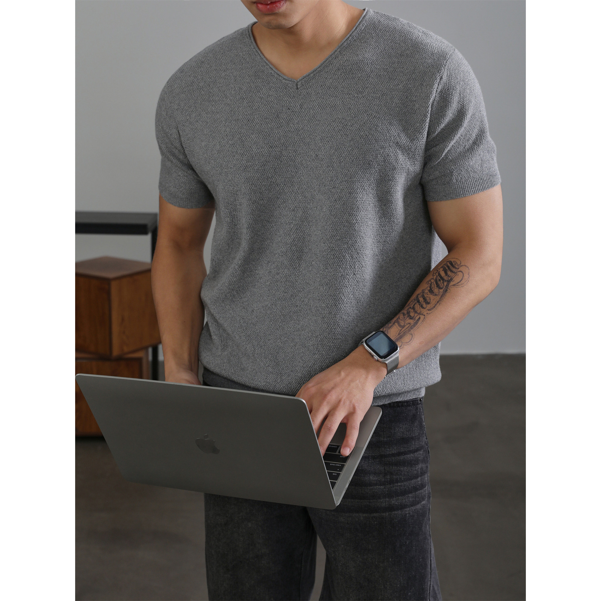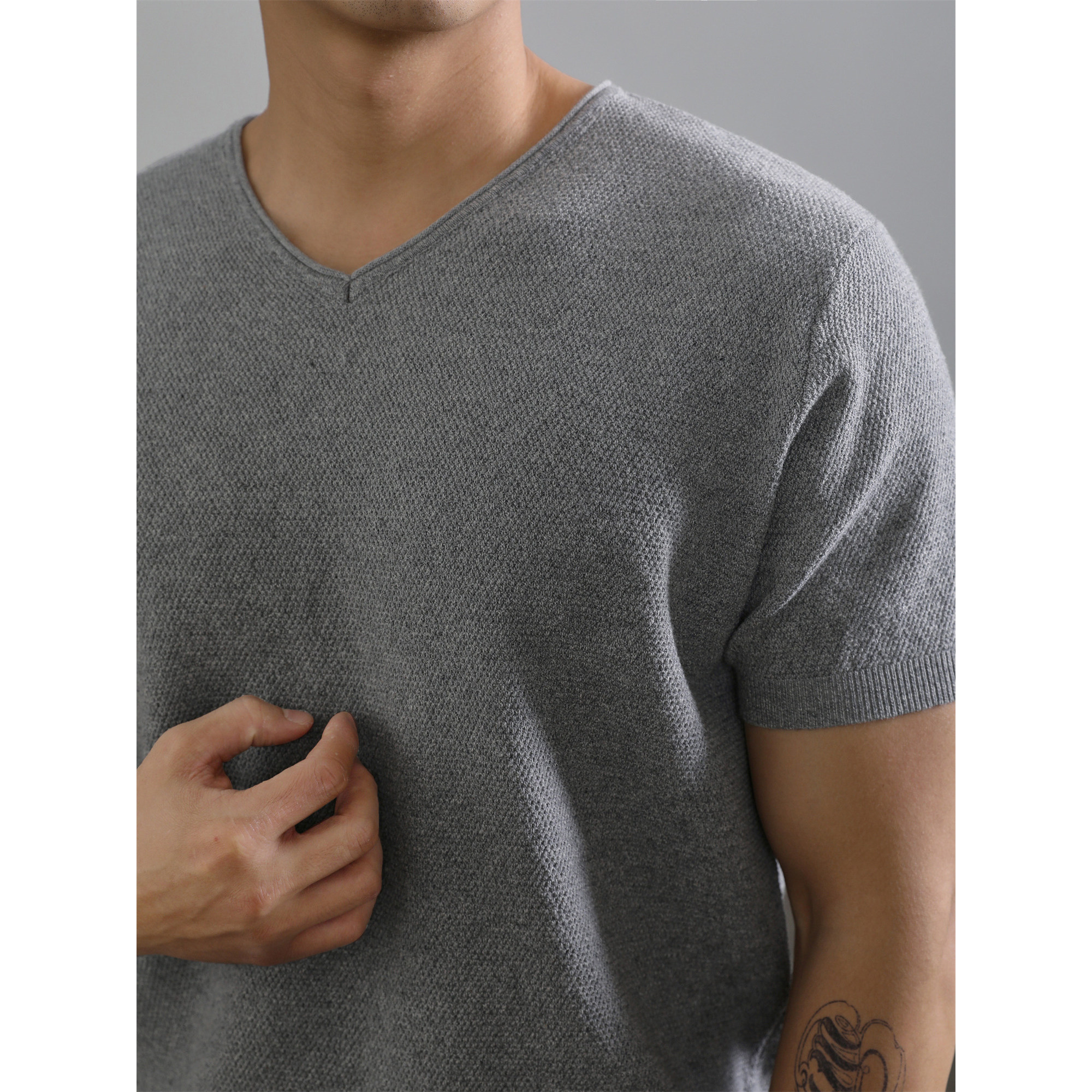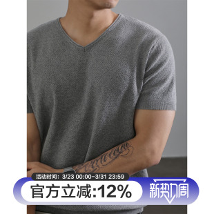 气质感V领体恤衫 韩版 夏季 针织短袖 LUUD 透气潮流简约T恤男款 新款