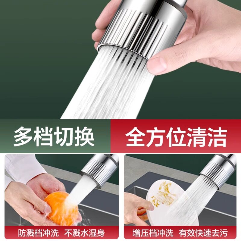 七水花专利厨房水龙头延伸器防溅绵密水万向龙头机械臂增压起泡器