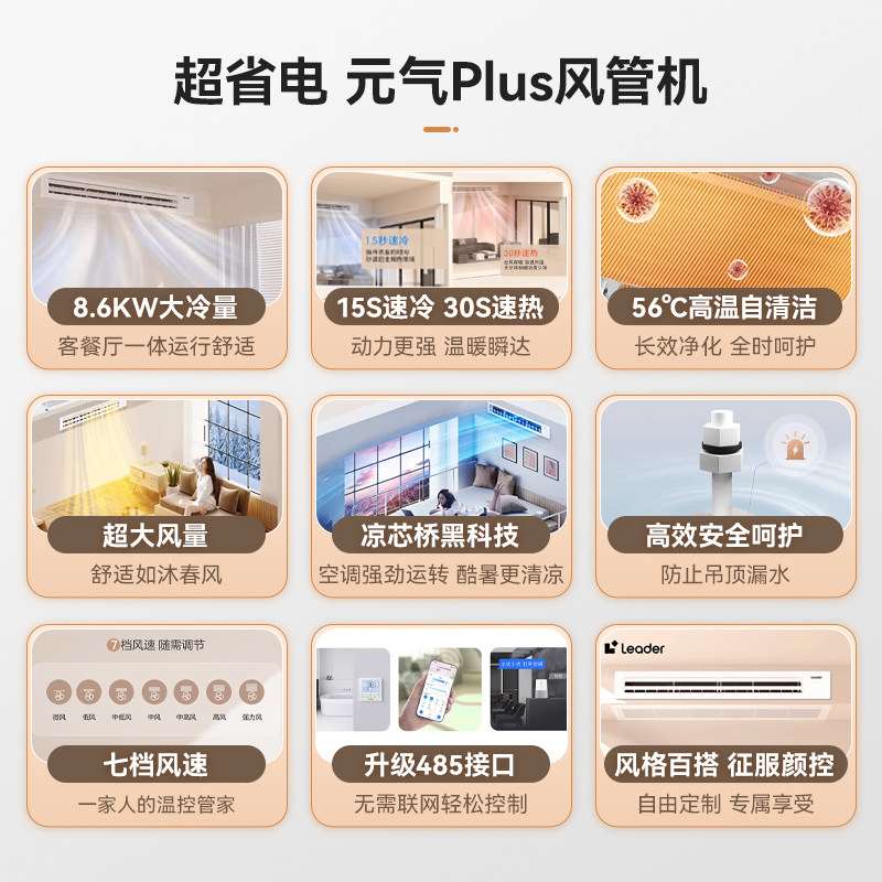 海尔统帅中央空调3匹 4匹风管机一拖一家用一级变频客厅冷暖旗舰
