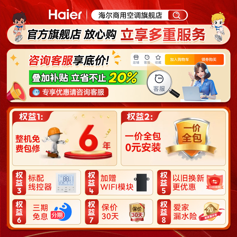 4匹风管机家用中央空调一拖一净省电 海尔3 云舒非凡 天猫直发