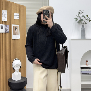 胖mm显瘦长袖 女加绒网纱半高领打底衫 洋气内搭上衣藏肉 蕾丝衫 大码