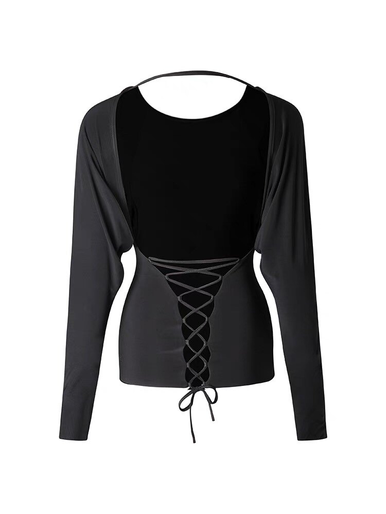 长袖 上衣复古蝙蝠袖 美背拉丁舞练功服成人女 海岸来信 ZYM2301