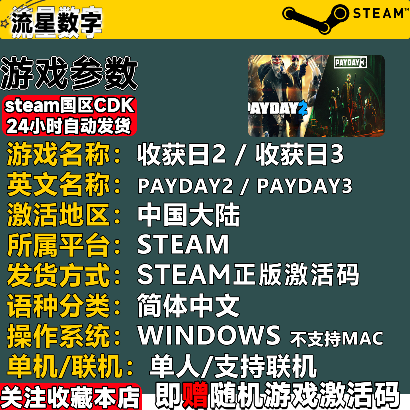 掠夺日2 PAYDAY Steam正版 激活码 收获日2 CDKEY 国区KEY