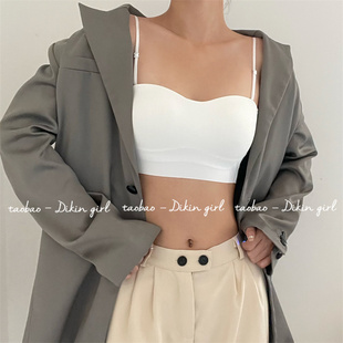抹胸吊带内衣一体式 背心文胸可外穿防走光聚拢白色无痕无钢圈文胸