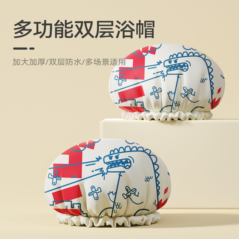 加厚双层防水浴帽女款 家用沐浴帽儿童头发防湿洗澡帽套厨房防油烟