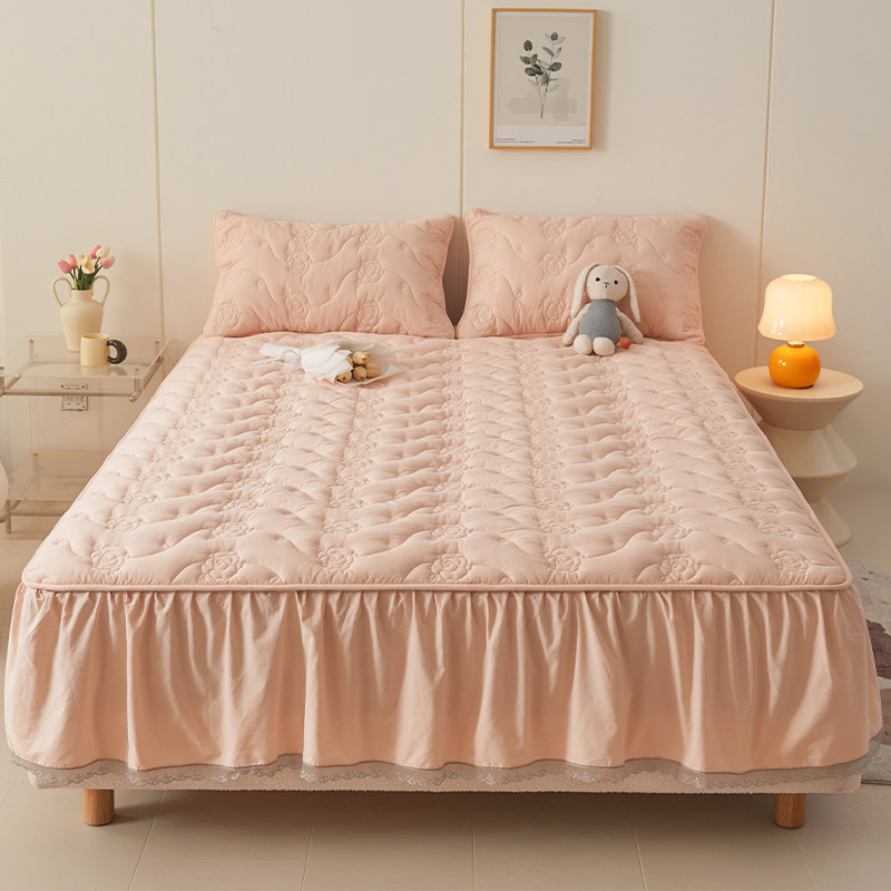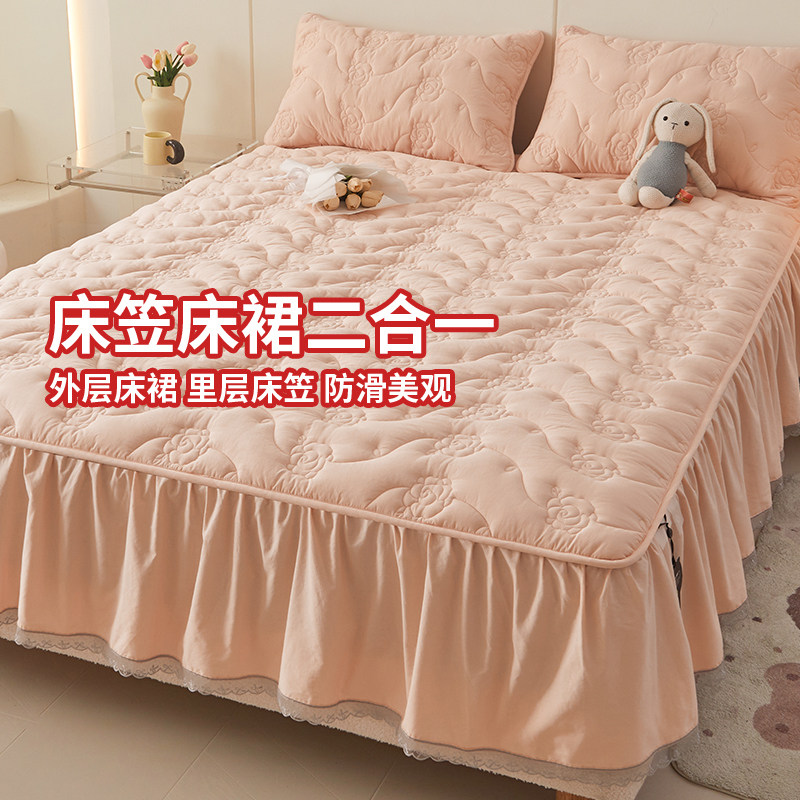通用 四季 2025新款 花边纯棉床笠带裙边加厚全棉水洗棉夹棉床罩裙式