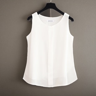无袖 双层雪纺白色吊带背心春夏季 内搭打底衫 宽松外穿西装 上衣 大码