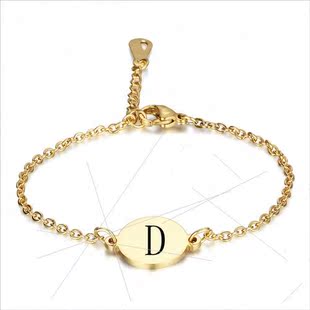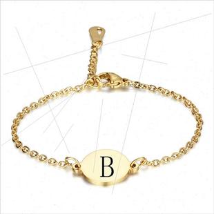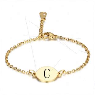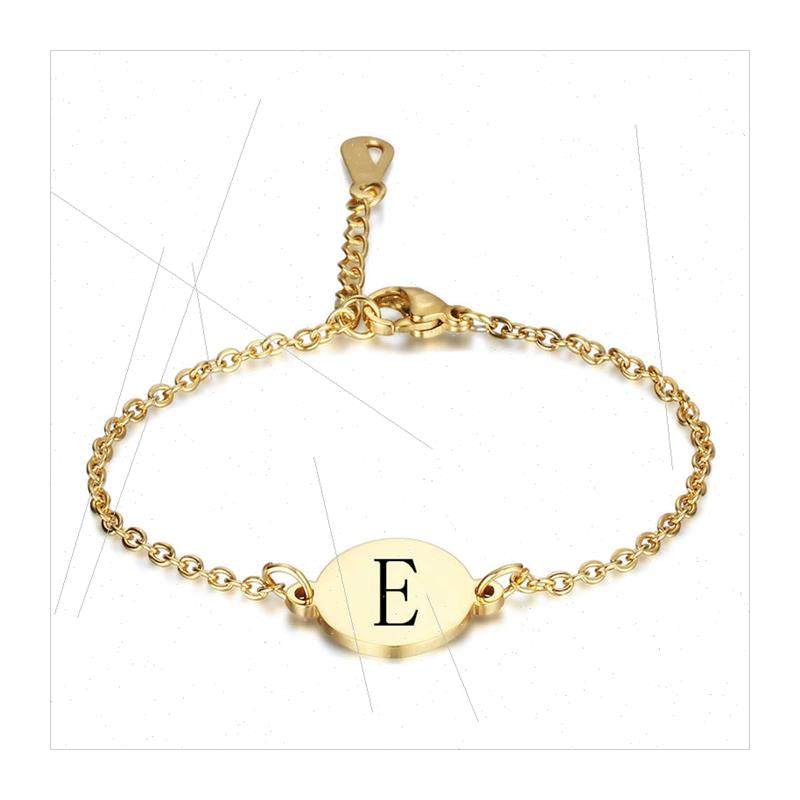 Alphabet Bracelet Round Engraved Steel Gold Tan Stainless