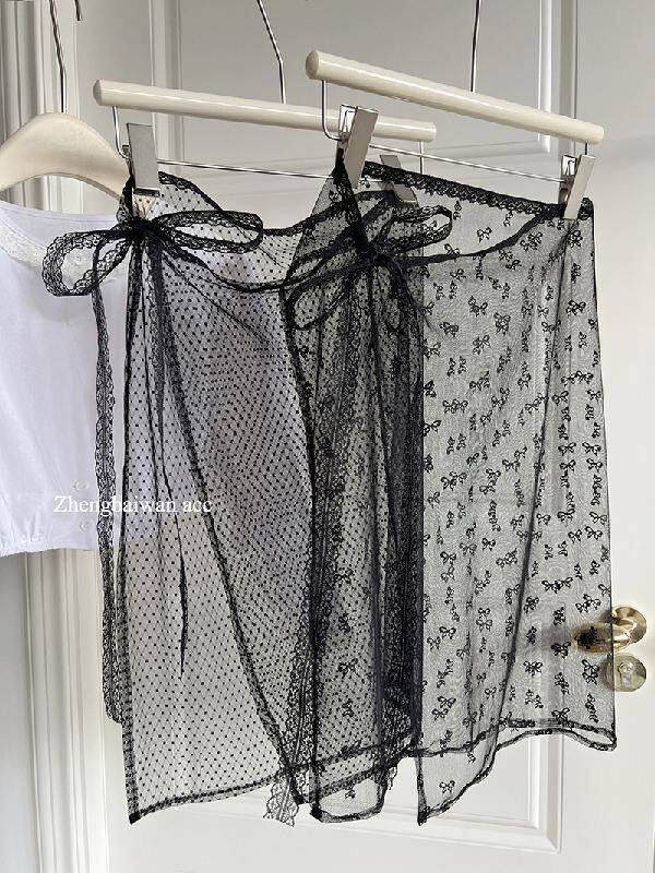 小众设计韩国复古蕾丝花边围裙女叠穿绑带半身裙百搭方巾丝巾辣妹