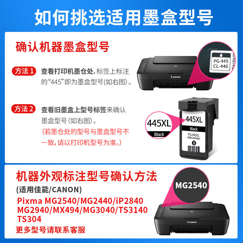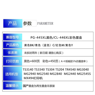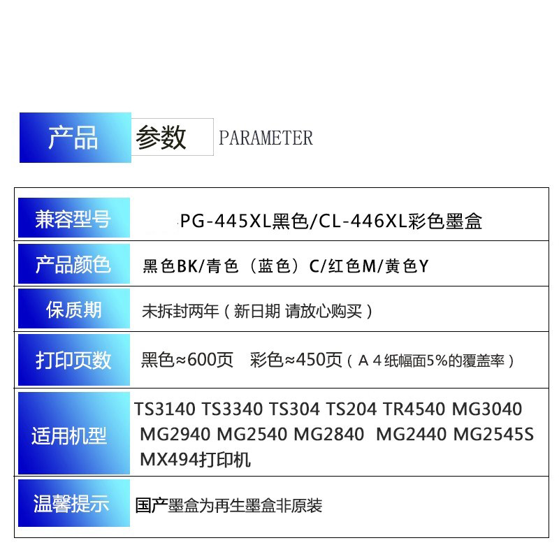2940 2440 IP2840TS3140可加墨 CL446墨盒MG2540s 适用佳能PG445