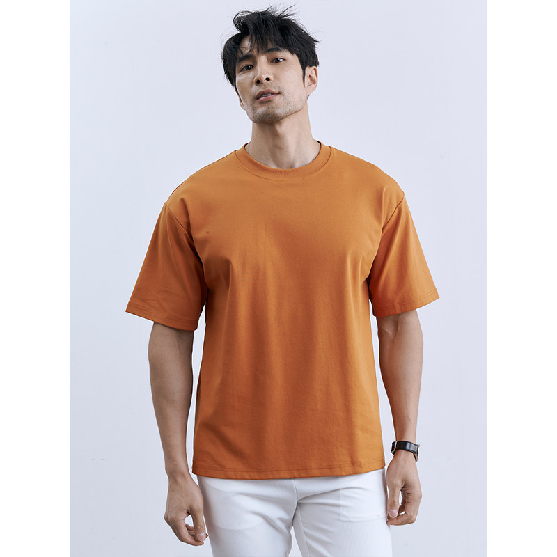 打底半袖 夏季 宽松休闲圆领白色t恤男士 体恤衫 潮 高级感珠地棉短袖