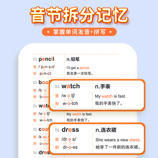 新概念英语1 2第一册第二册单词速记口袋书短语句子速记音节拆分日常便携随时学习单词碎片时间记忆单词背诵神器手册音频带读