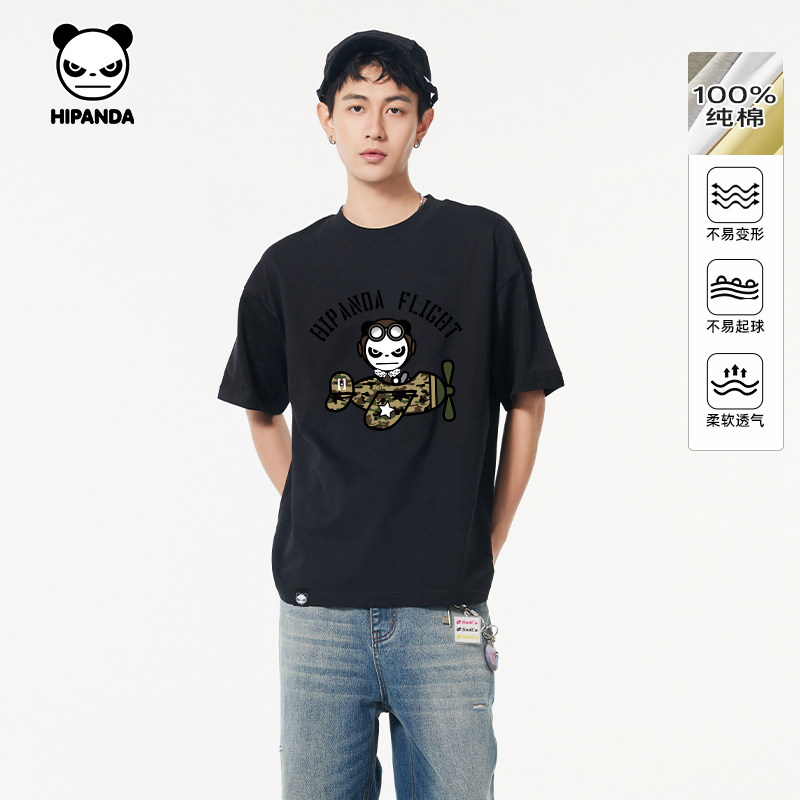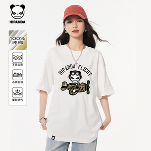 透气宽松T恤C 2025夏新款 Hipanda你好熊猫国潮个性 小众纯棉男短袖