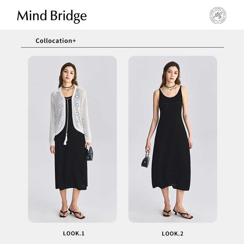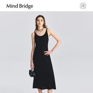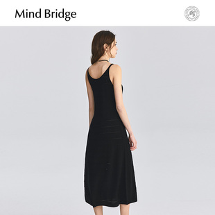 MindBridge 女士肌理感镂空吊带裙2025夏黑色针织连衣裙 莱赛尔