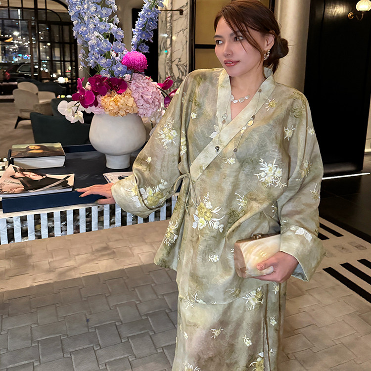 绿色半身裙女款 新中式 显瘦气质裙子 新款 密扇2025夏季