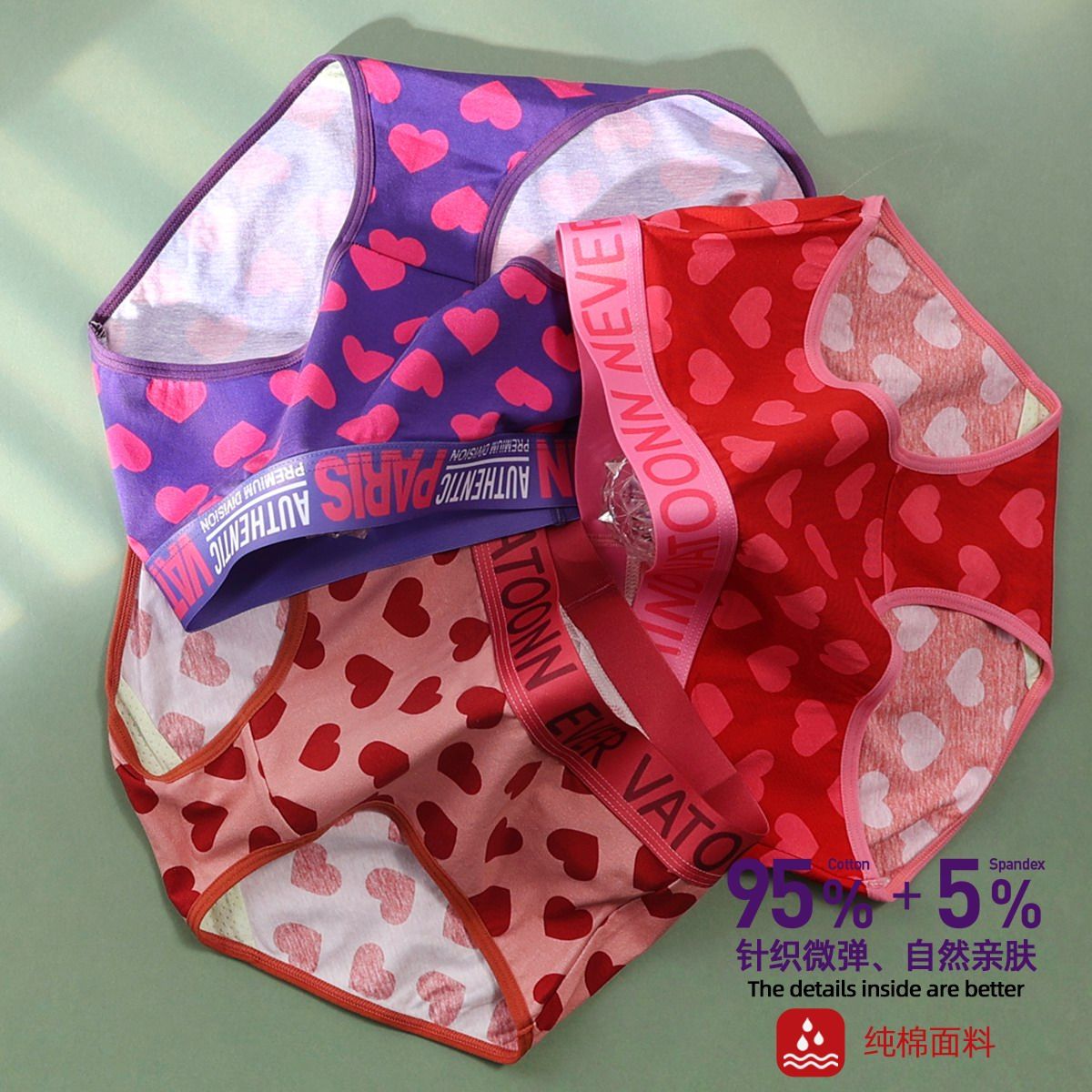 少女蕾丝甜美可爱印花女生三角裤 红豆女士内裤 纯棉全棉裆抗菌短裤