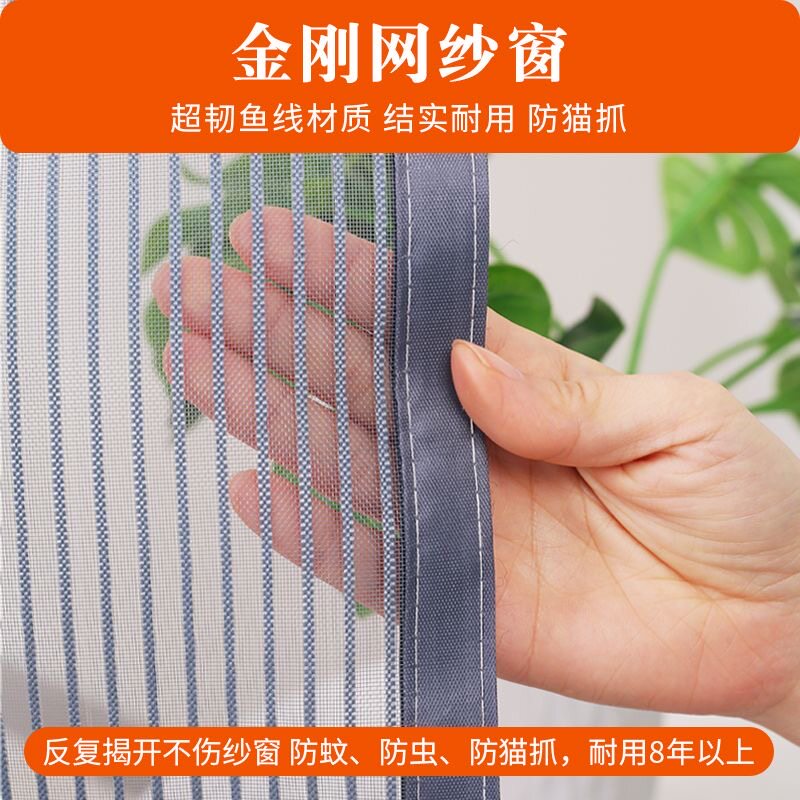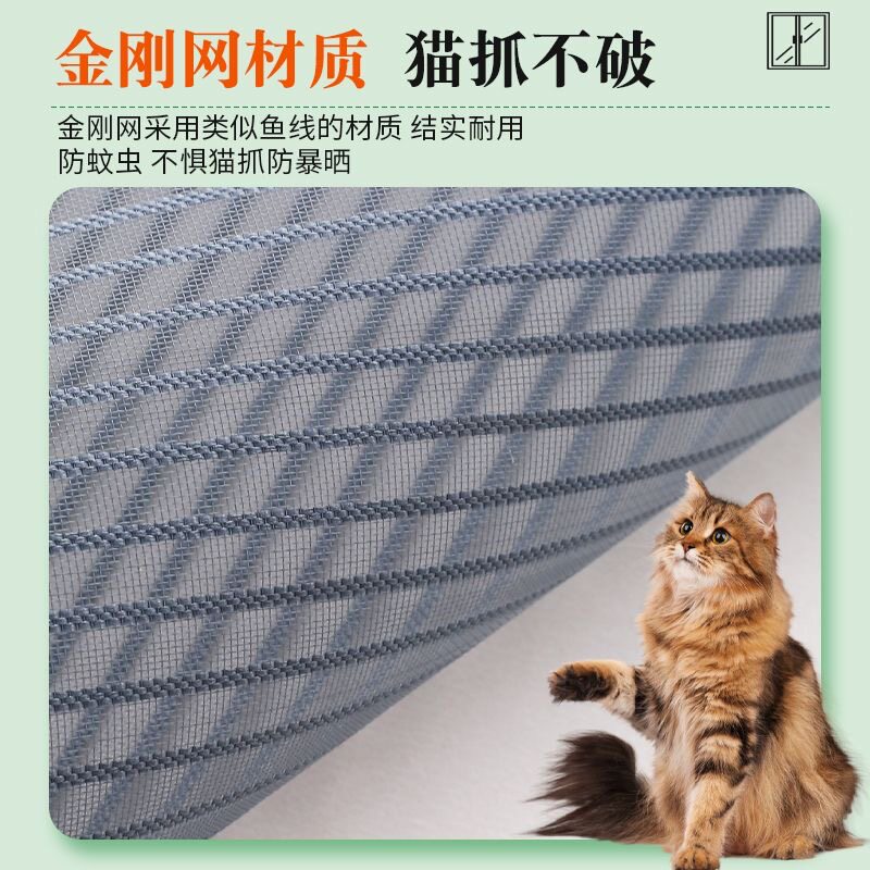 金刚网纱窗防猫抓防猫跳楼魔术贴自装 自粘免打孔养猫咪防蚊沙窗帘
