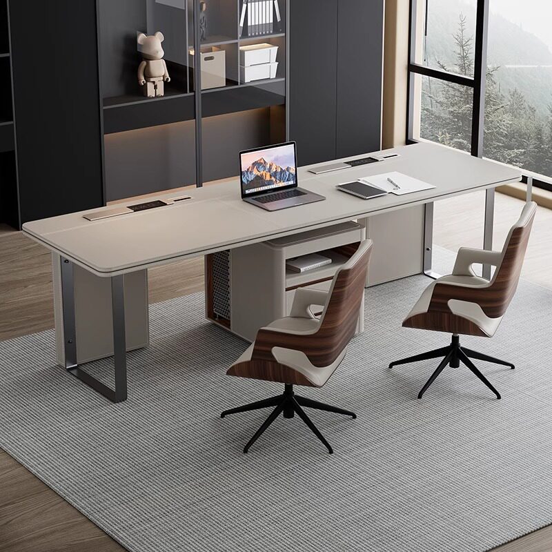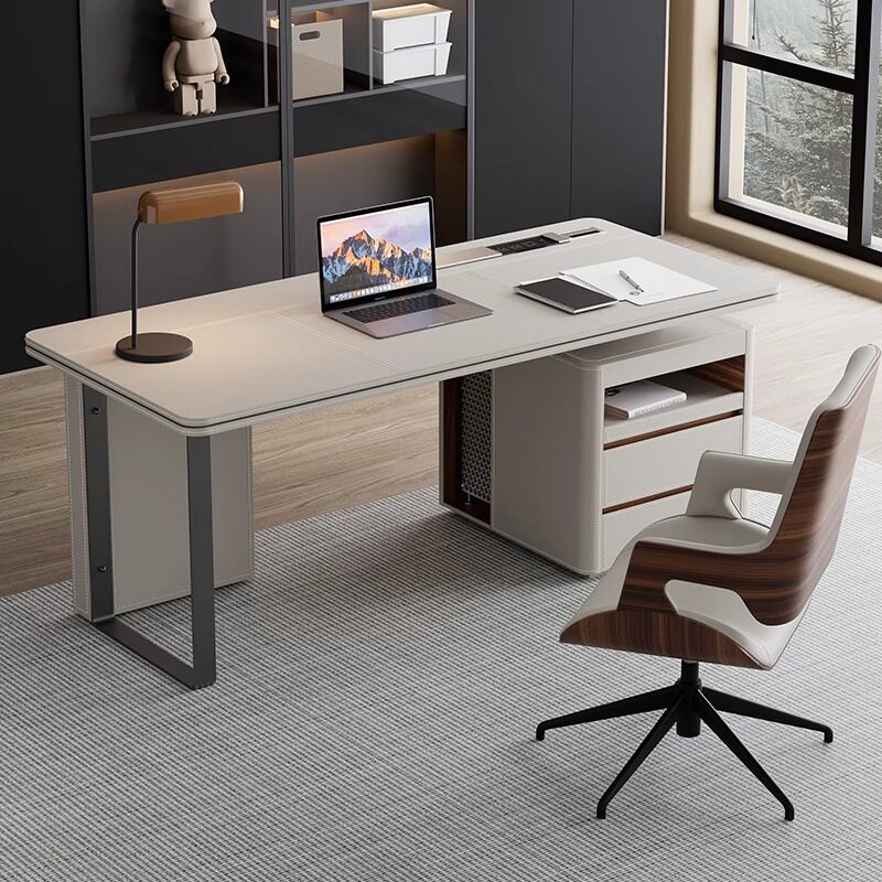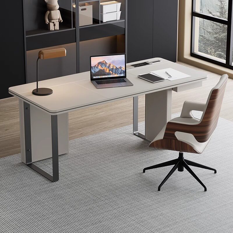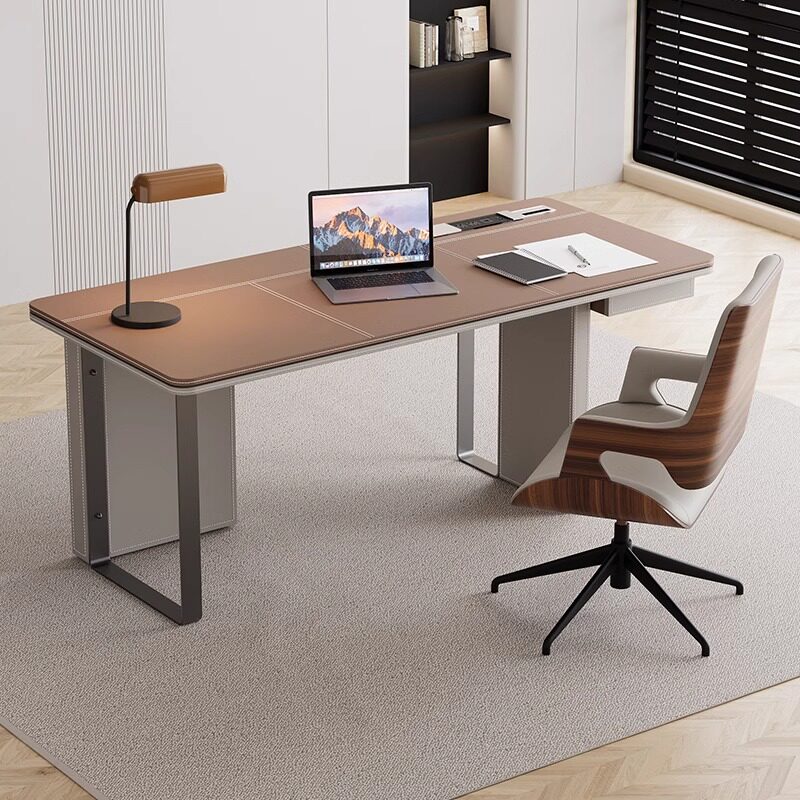 职员马鞍皮办公桌现代简约家用转角书桌意式 极简高端电脑桌工作台