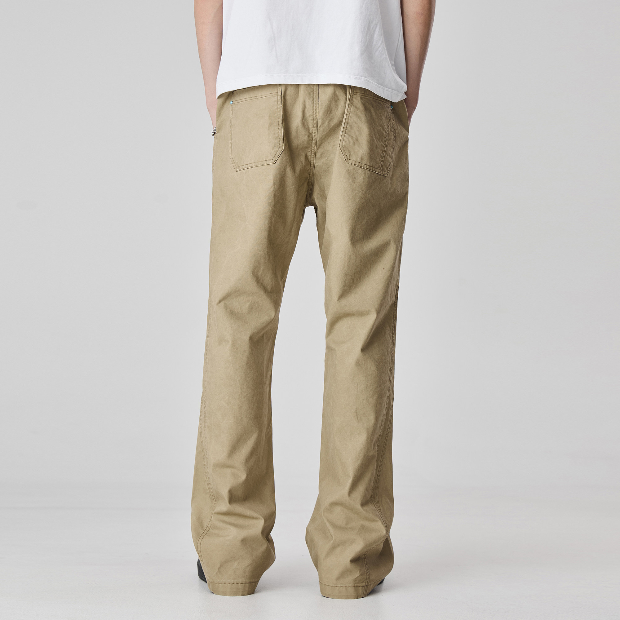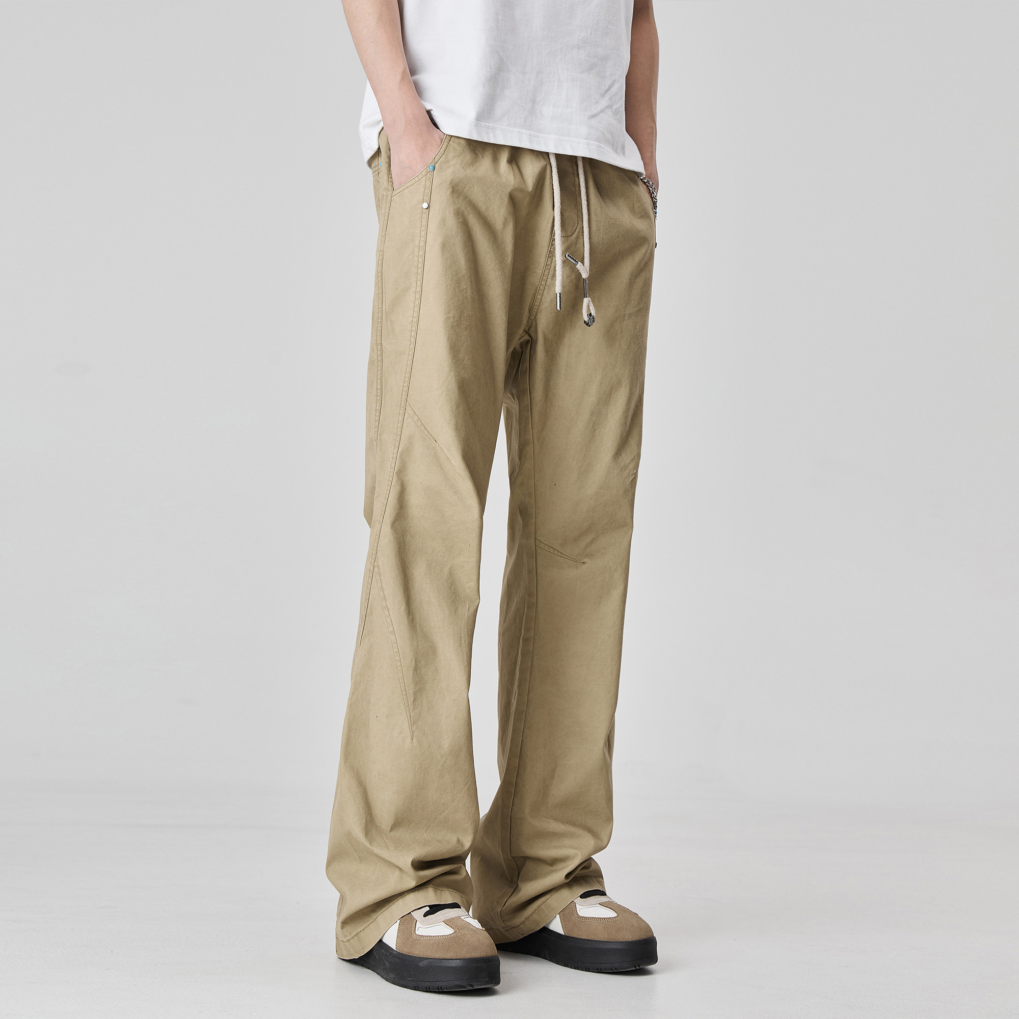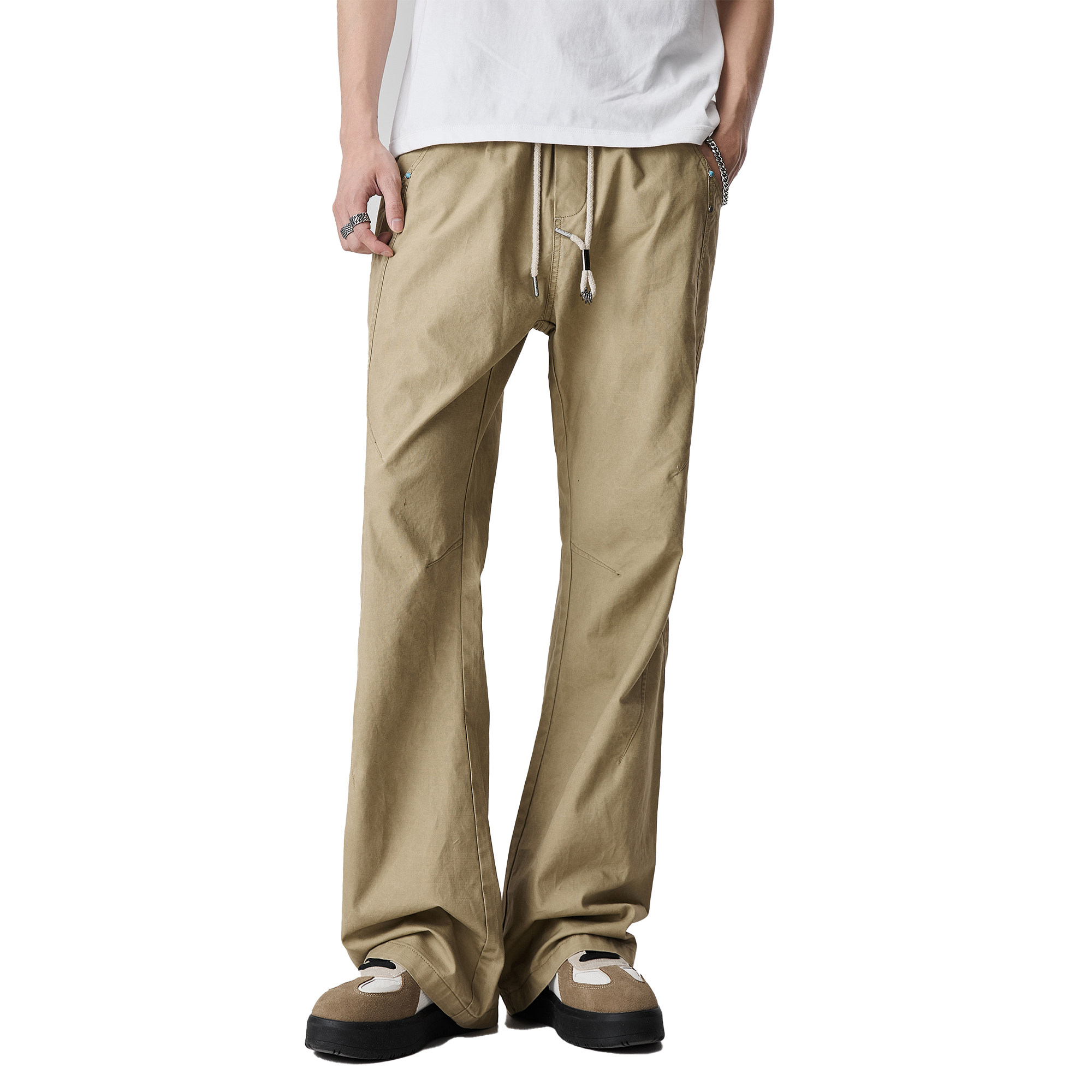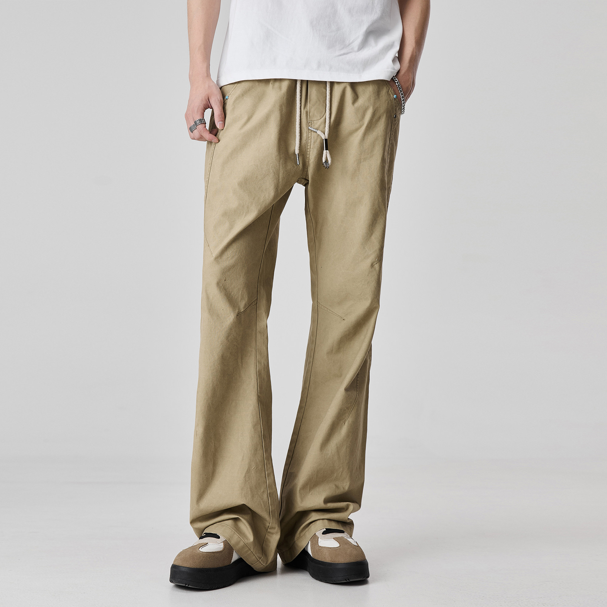 窄版 喇叭裤 微喇直筒休闲裤 卡其色cleanfit修身 子 男春秋美式 ALLIN